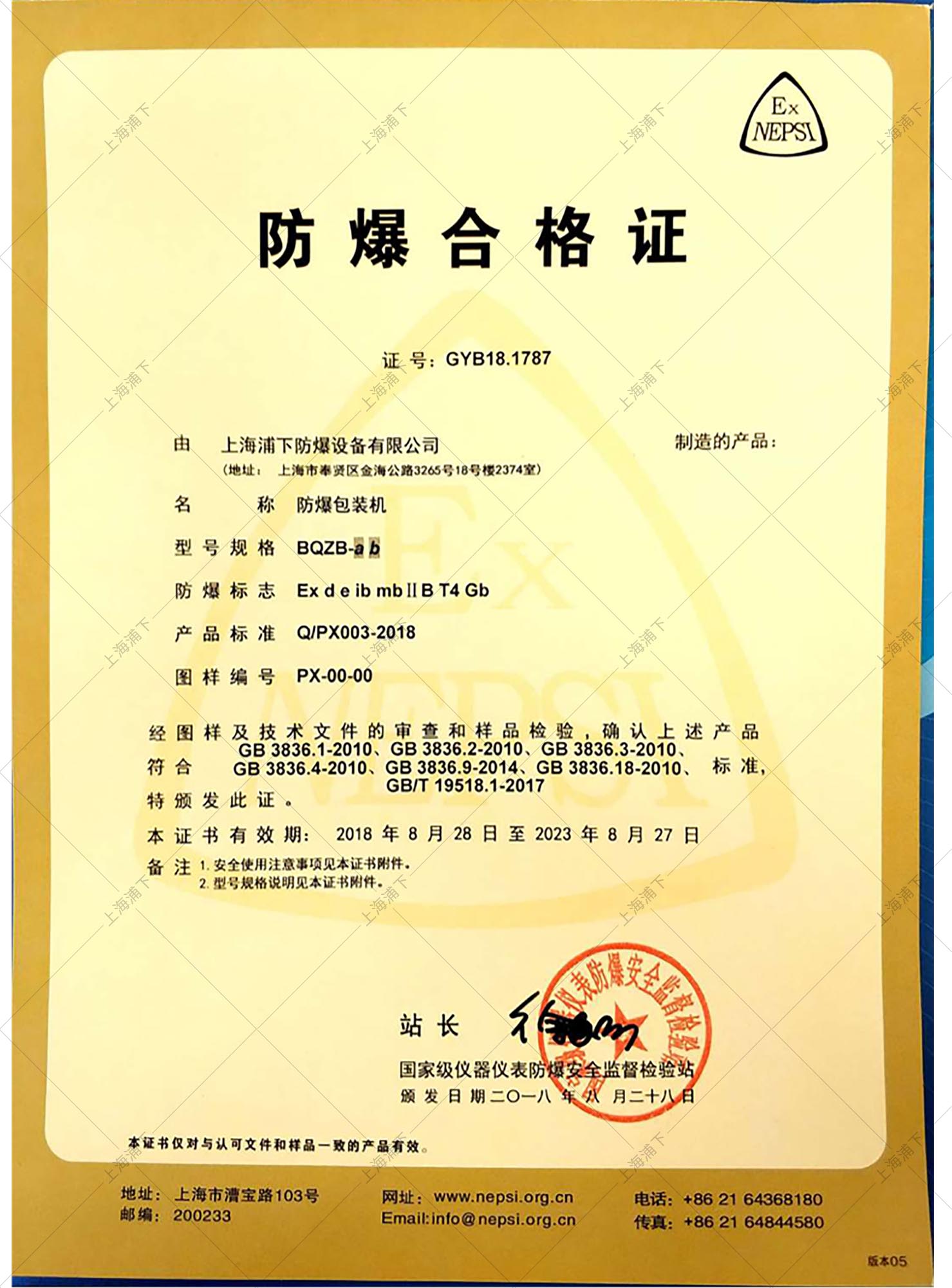 8、產(chǎn)品具有IIB級(jí)標(biāo)準(zhǔn),可用溫度組別T2、T3、T4的爆炸性氣體混合物的危險(xiǎn)場(chǎng)所,防爆等級(jí)達(dá)到(ExdiaIIBT4、內(nèi)膽IICT4),產(chǎn)品經(jīng)過(guò)國(guó)家級(jí)防爆檢測(cè)站檢驗(yàn),并具有國(guó)家級(jí)防爆合格證。