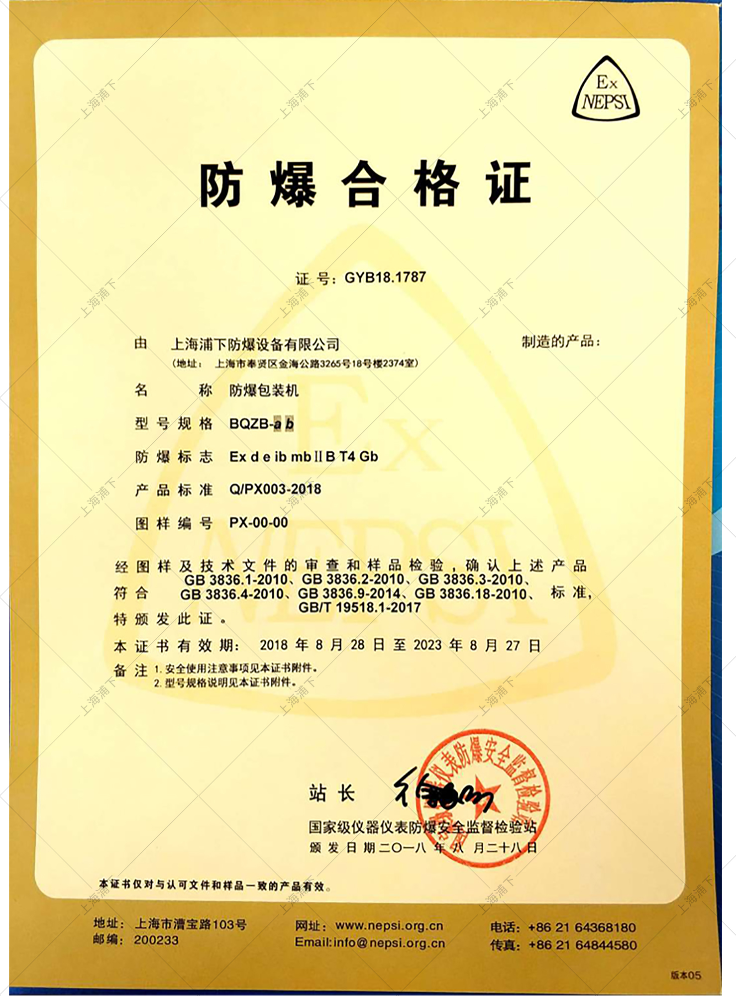 防爆等級: Ex d e ib mb II B T4 Gb